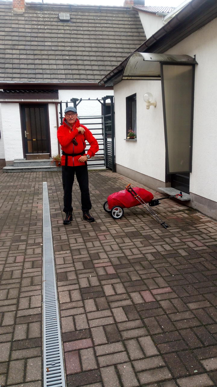 Ich nehme an, wir hätten dort den Rest des Nachmittags bleiben können und man hätte wahrscheinlich noch eine Fahrgelegenheit nach Eckartberga für uns organisiert. Aber, wie bereits an anderer Stelle beschrieben, war das so nicht vereinbart, und so sind wir nach 1 Stunde sehr entspannt weitergezogen. Kurioserweise hatten Christine und Stefan zwar in anderen Namen für die Unterkunft, aber die gleiche Adresse. Sie waren im Hotel, ich im Pilgerzimmer. Ich glaube, die Wirtin hätte es gerne gesehen, wenn ich auch im Hotel gewesen wäre.