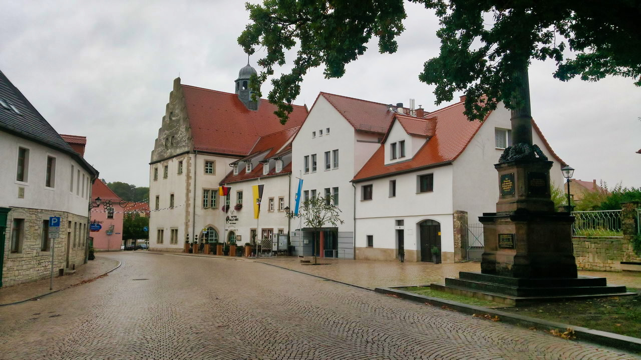 Wir sind dann bis Freyburg zusammen gelaufen und hatten noch genug Atem, um uns zu unterhalten. Der allmähliche Aufstieg von Pettstädt an endete dann in einem sehr steilen Abstieg in Freyburg, bei dem ich den PiWa führen/tragen musste. Mit der Ankunft begann es immer stärker zu regnen. Nachdem ich das Pilgerzimmer bezogen habe, ging ich noch mal in den Ort. In Freyburg befindet sich übrigens die Rotkäppchen Sektkellerei. Ich hätte diese gerne besichtigt, fand aber den Eintrittspreis dazu sowohl üppig wie überflüssig. Ich glaube, ich habe unsere hiesigen Brauereien fast alle besichtigt ohne etwas dafür etwas zu bezahlen.