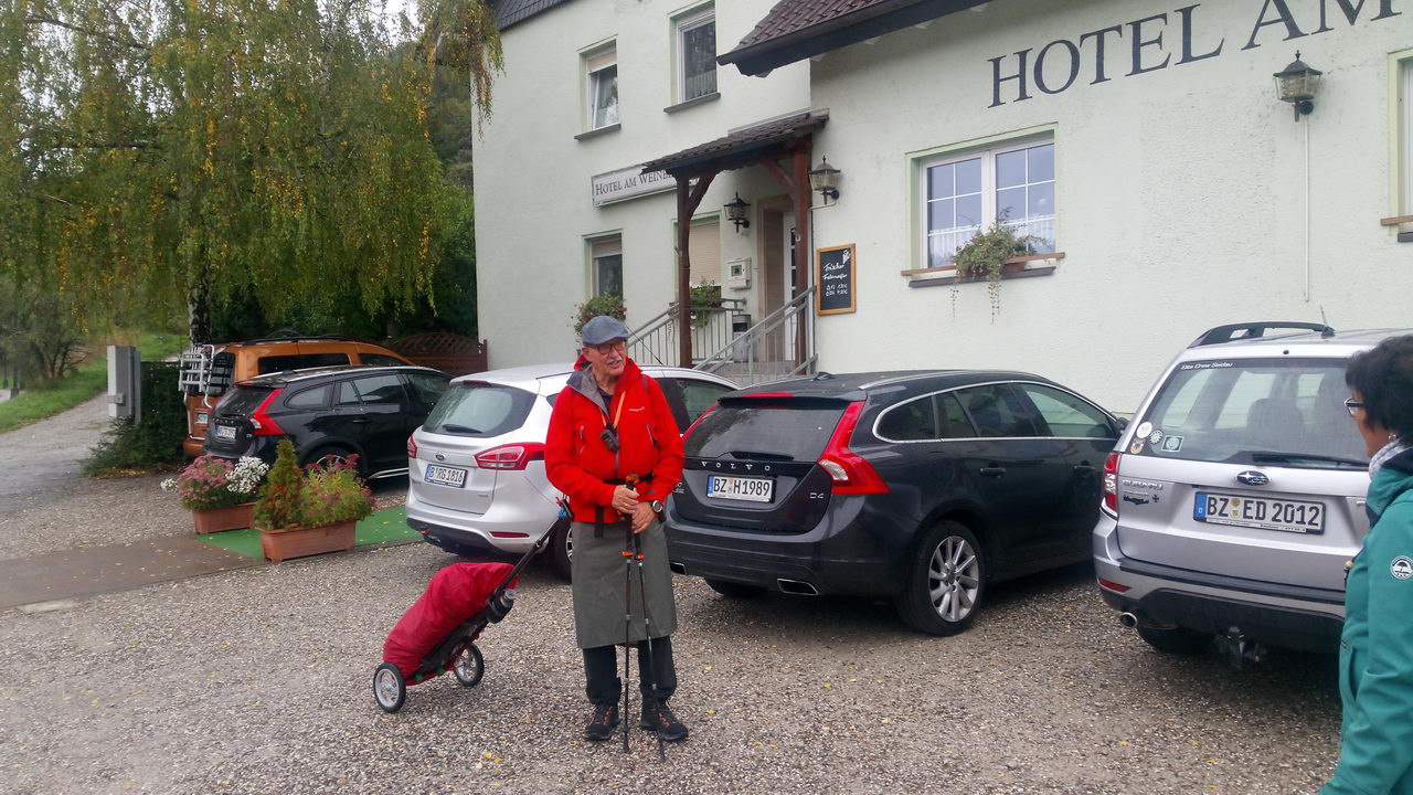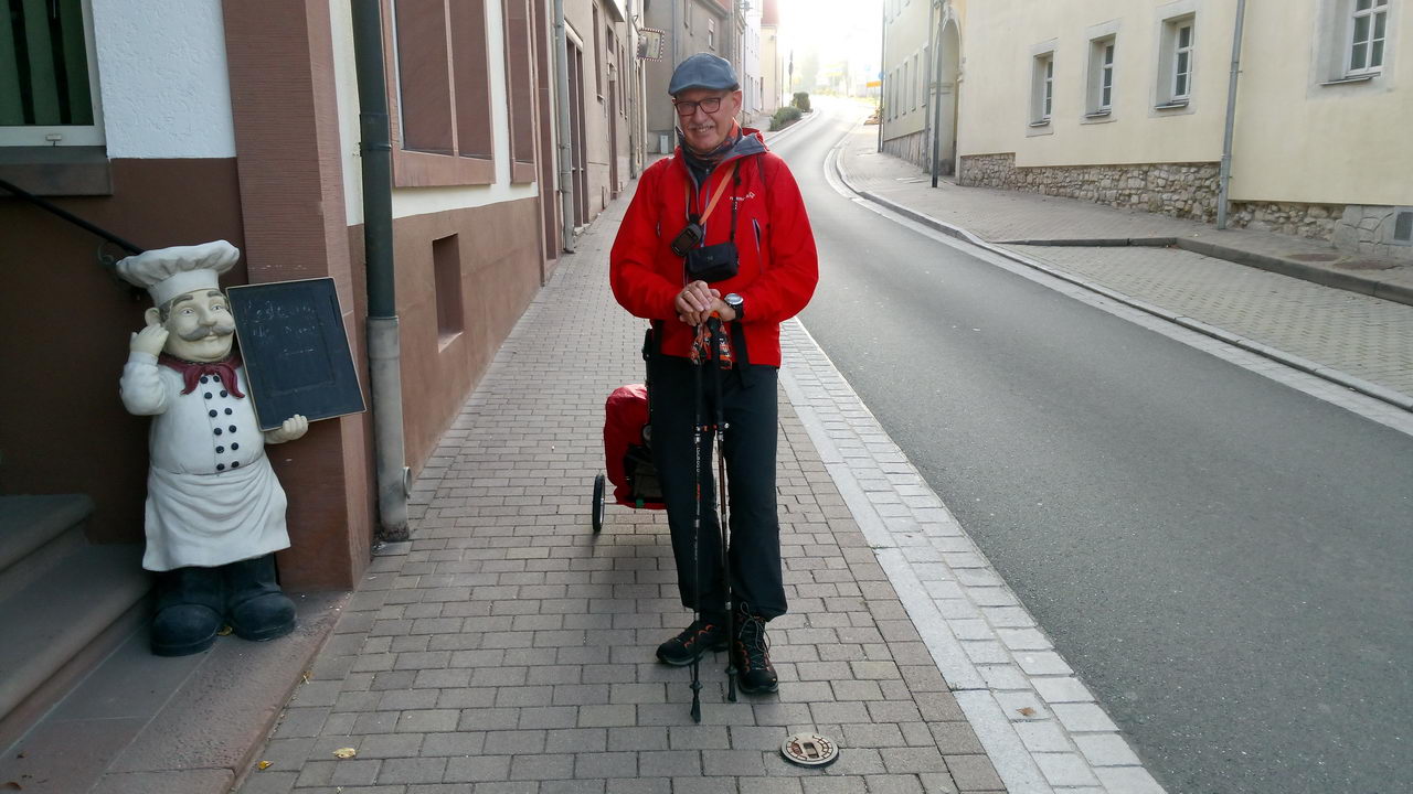 Abends habe ich im hoteleigenen Restaurant gegessen und wurde zu dem kurzurlaubenden Ehepaar Rheinländer gesetzt. Ich erinnere mich gerne an dieses kurzweilige und witzige Tischgespräch. Frau Rheinländer und ich kreierten bei dieser Gelegenheit auch die Basis für die diversen Benennungen meines Pilgerwagens.