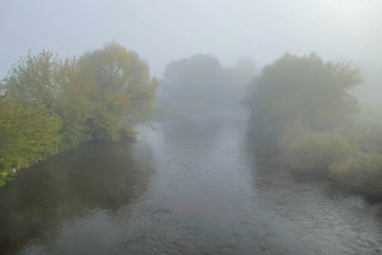 Der Tag begann mit Nebel, aber es war erkennbar, dass es ein sonniger Tag werden würde. Und so habe ich mit Genuss erlebt, wie die Landschaft an der Saale immer deutlicher aus dem Nebel hervortrat.