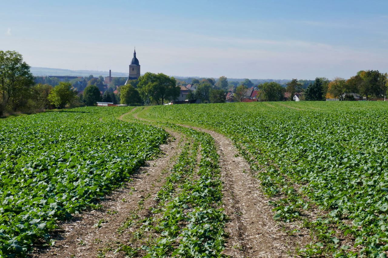 Heute wieder sehr schönes Wetter, sonnig aber nicht heiß, akzeptable Höhenmeter und glatte Wege. Insbesondere auf dem mittleren Stück war die Landschaft sehr offen und bot sehr weite Sichten. Die einzige Erschwernis waren wieder die Feldwege, die die Traktoren zur matscht haben. Dass riesengroße Felder gibt, gehe ich auch von riesengroßen Traktoren aus! Der Lehm wollte mich wieder im Lande halten. Bevor ich in Buttelstedt einlaufen konnte, musste ich mir bei einem im Garten arbeitenden Ehepaar einen Eimer Wasser und eine Wurzelbürste erbeten, weil ich aussah, wie der Feldweg, über den ich gerade gekommen bin. Danke für die Hilfe.